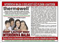 Obáváte se nebezpečných plísní a bakterií ? Trápí Vás alergie, nebo častý výskyt virových onemocnění ? Pracujete v prostředí se zvýšenou vlhkostí (kuchyně, prádelny, apod.) nebo ve zdravotnictví, kde se to hemží různými viry a bakteriemi ? Tak právě pro Vás je zde interiérová malba THERMOWELL s antialergenní a bakteriální odolností a odolností vůči plísním. Celý popis