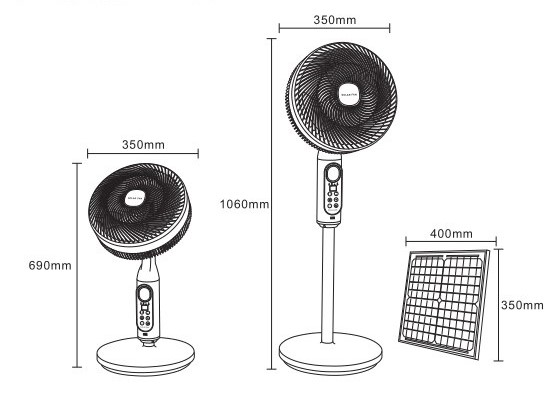 | Záložní elektrické napájení: | Integrovaná dobíjecí baterie zajišťuje neustálý chod i za oblačných dnů nebo v noci, což zaručuje nepřetržitý komfort. Pokud by však bylo potřeba, je možné ventilátor připojit na záložní elektrické napájení do běžné zásuvky 230V. |