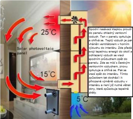 Panely jsou schopné zvýšit teplotu vzduchu, který proudí z venku do interiéru na jaře a na podzim až o 35°C v závislosti na intenzitě slunečního záření. V tomto období dosahují maximální účinnosti a mohou zcela nahradit hlavní topný systém. Podobné je to i v zimních měsících, kdy jsou jasné slunné dny. Výrazně tak snižují Vaše náklady na vytápění. Návratnost pořizovací ceny těchto panelů je  max. 3 roky.