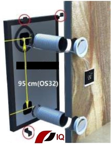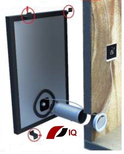 Před montáží panelu je nutné udělat do obvodové stěny (nebo stropu při montáži na střechu) otvor o průměru 135mm. U panelů IQ-OS32 se pak dělají dva otvory. Zhotovenými otvory se do interiéru protáhne hliníková flexi hadice, která je zakončená ventilační mřížkou s přírubou, která zakryje stopy po otvoru.